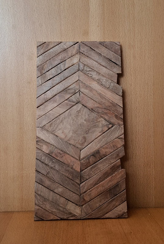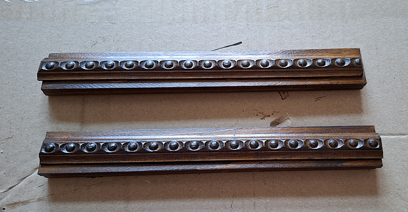Beide Leisten sind gewachst und mit der Bürste poliert. Das Muster der Unterleiste kommt sehr schön zur Geltung. Die obere Leiste ist nur angelehnt.