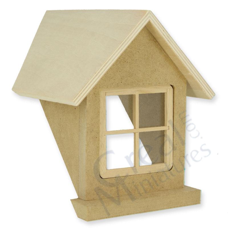 Die Gaube passt für ein Puppenhausdach mit einer Dachschräge von 45 Grad. Das Fenster 4,8 cm x 5,0 cm, sowie die Acrylscheibe liegen lose bei damit die Gaube behandelt werden kann. Das Dach sowie das Fenster ist aus Sperrholz, die übrigen Wände mit Fensterbrett aus MDF.