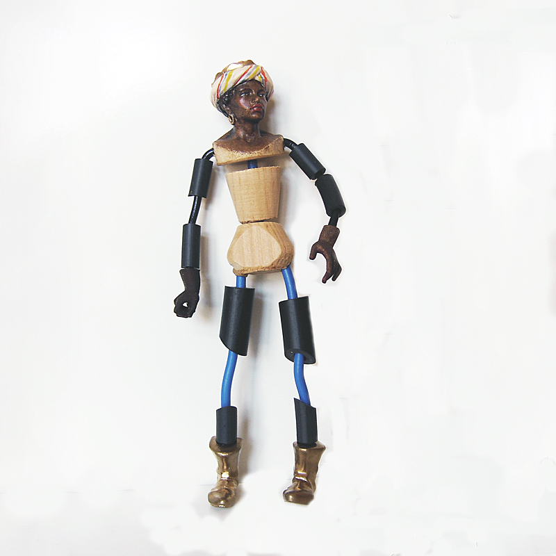 Die Krippenfigur ist aus Holz, Laser geschnitzt und komplett zum Bekleiden vorbereitet. Arme, Beine und Rumpf sind mit Draht verbunden und befestigt. Das zweite Bild zeigt einen Vorschlag wie der Kameltreiber fertig bekleidet aussehen könnte.