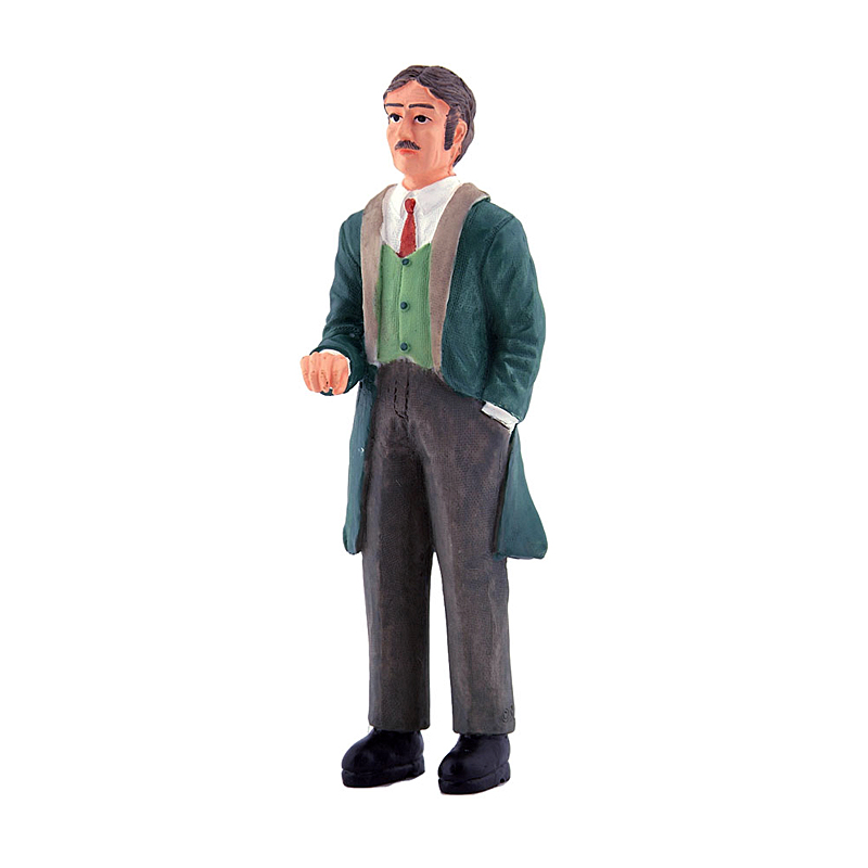 Viktorianisch bekleideter Mann aus Resin in stehender Position zur Dekoration im Puppenhausgarten.