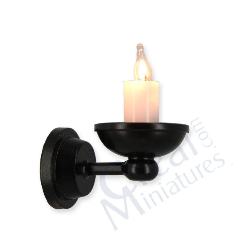 1-armige Wandlampe in Kerzenform für die Puppenstube mit austauschbaren Kerzenbirnen in 12 Volt.