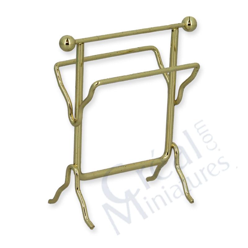Der Handtuchständer für das Badezimmer im Puppenhaus kann mit zwei, drei Handtüchern bestückt werden.