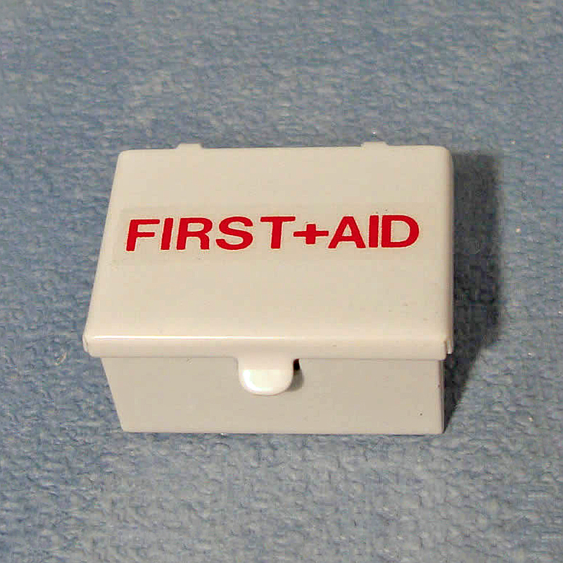 Erste Hilfe Kasten mit englischer Aufschrift die auch abgezogen werden kann um das in Deutschland übliche grüne Kreuz auf dem Kasten zu applezieren. Der Deckel läßt sich öffnen, ist innen leer und kann nach Belieben gefüllt werden.